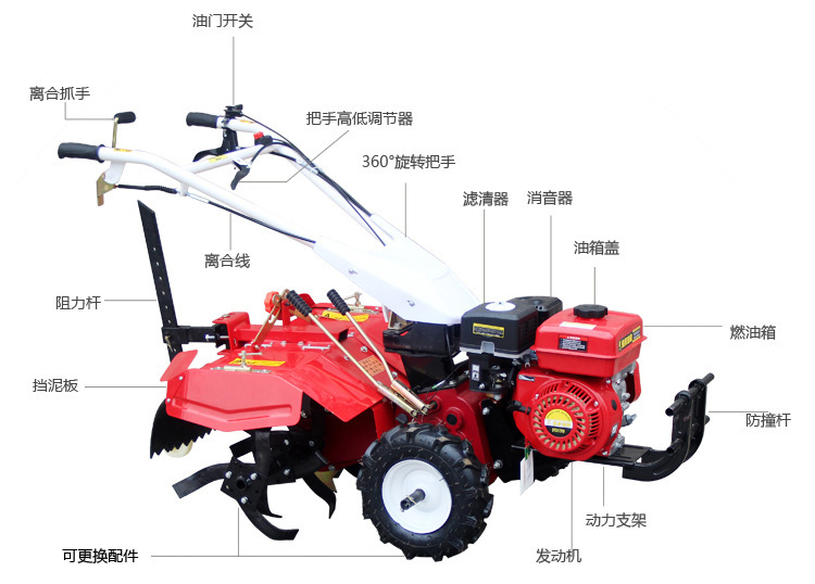 产品详情:农用开沟培土机牧泰微耕机自走式小型微耕机果园松土起垄旋耕机牧泰微耕机使用一体式铸铁变速箱,具有多种齿轮选择,具有旋耕,深耕,@nz等关键功用@,沟渠和泥土耕作。它具有体积小,功率大,油耗低,机能完备,性能准确,操作灵巧等显著优点。其中,总体铸铁变速箱具有刚性好,不变形,精度高,用到寿命长;六轴输出稳固结实,可普遍用以山区,丘陵,冲积平原和温室的旋耕,深耕,沟渠和泥土耕作,垄沟,播种和施肥,耘锄中耕,抽水和药物等对玉米,小麦,黄豆,红薯,生姜,葱,番薯,马铃薯,黄烟,葡萄,果园和其他谷物和经济作物的牧场管理,播种,除草,施肥起垄扶沟具有很高的工作效率,相当于20多人的工作量。它彻底改变了微耕机unning的原始耕种方法。它对农民朋友致富的帮助。有了它,您可以轻松喜悦地耕种和收获。